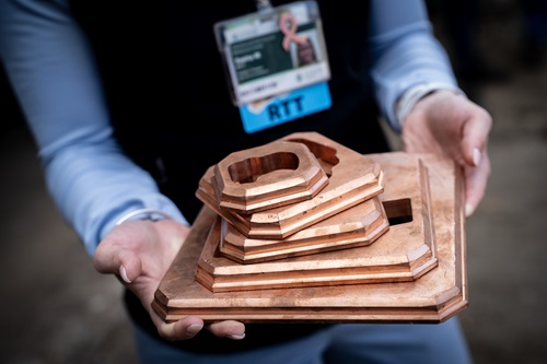 Earlier this year, radiation therapists Sam Bickerton and Sasha Morton, who practice at Dartmouth Cancer Center - St. Johnsbury, noticed something during a routine effort to tidy their workspace: shelves overflowing with unused copper electron cutouts. These personalized cutouts — once common in electron treatments — are now tailored to each patient and rarely reused. Over the past decade, they had quietly accumulated, holding no ongoing clinical utility but representing valuable material.