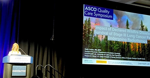 The month that Katie Lichter, MD, MPH, started her medical training at the University of California San Francisco Department of Radiation Oncology, was the same month that Northern California was experiencing unprecedented wildfires during the COVID-19 pandemic. Dr. Lichter shared, “I quickly witnessed the parallels between maintaining the health of our environment and the health of our patients, recognizing that both are deeply interconnected.”