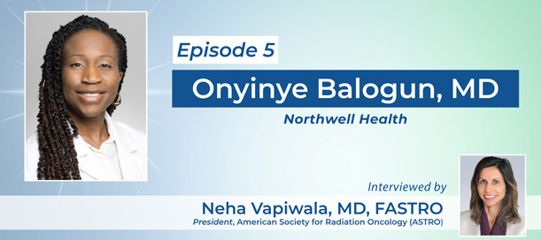 | Enjoy this latest conversation between ASTRO President Neha Vapiwala, MD, FASTRO, and Onyinye Balogun, MD, Northwell Health, who specializes in gynecologic cancers. See how Dr. Balogun espouses the advice she gives mentees to not be their own “rate-limiting step.” She shares her engagement in research across multiple domains including the Dartmouth 3D Clinical Scholars Program, the Genome Center, and research based out of Zambia, Nigeria, to name a few. Interest piqued? Have a listen! |