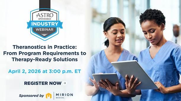 | Radiation oncology is playing an increasingly important role in theranostics — but building a successful program requires many components, from infrastructure and workflow to radiation safety and regulatory considerations. Mirion Medical is hosting a free webinar for ASTRO members offering practical insights into what it takes to stand up and operationalize a theranostics program, including real-world challenges, requirements and lessons learned. The session will conclude with a look at how therapy-ready, turnkey solutions can help streamline implementation — bringing together the software, instrumentation and expertise needed to move from planning to practice with confidence. Register for this free webinar! |